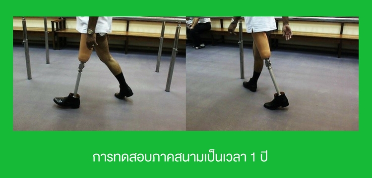 “กลไกข้อเข่าแบบใหม่ชนิดหลายจุดศูนย์กลางการหมุนที่มีข้อต่อกลไกแบบ  Prismatic joint ถูกพัฒนาคิดค้นจนได้กลไกที่มีเสถียรภาพในทุกตำแหน่งการเดิน (Gait cycle) ให้การเคลื่อนไหวเหมือนเข่าจริงตามธรรมชาติ ช่วยให้ผู้ใช้มีการทรงตัวที่ดีไม่ล้มขณะยืนหรือเดิน และมีลักษณะท่าทางการเดินที่เป็นธรรมชาติ กลไกนี้ได้ผ่านการทดสอบความแข็งแรงตามแนวทางมาตรฐานสากล ISO 10328 แล้ว นอกจากนี้ ยังมีการทดสอบภาคสนามกับอาสาสมัครจากโรงพยาบาลทหารผ่านศึก พบว่ากลไกข้อเข่าของขาเทียมที่ออกแบบสามารถรักษาเสถียรภาพขณะเดิน มีความมั่นคง และมีความคงทนที่ดี