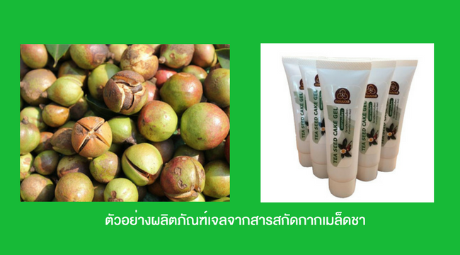 “เจลต้านเชื้อราที่ผิวหนังจากสารสกัดกากเมล็ดชา” ได้ผ่านการคิดค้นและพัฒนาต่อยอดเป็นผลิตภัณฑ์ใช้ภายนอกสำหรับรักษาโรคเชื้อราผิวหนังที่เกิดจากการเชื้อรา โดยผ่านการทดสอบแล้วว่าไม่ก่อให้เกิดความระคายเคือง และไม่มีความเป็นพิษต่อเซลล์ผิวหนัง สูตรเจลใสสีน้ำตาลอ่อน ไม่ขุ่น ไม่มีกลิ่นเหม็น มีความคงตัว ไม่แยกชั้น ไม่เหนียวเหนอะหนะ ทดสอบใช้ในอาสาสมัครโรคเชื้อราที่เท้า พบว่า อาการของโรคดีขึ้น ไม่เกิดอาการคัน และไม่ทำให้ผิวหนังตกสะเก็ด