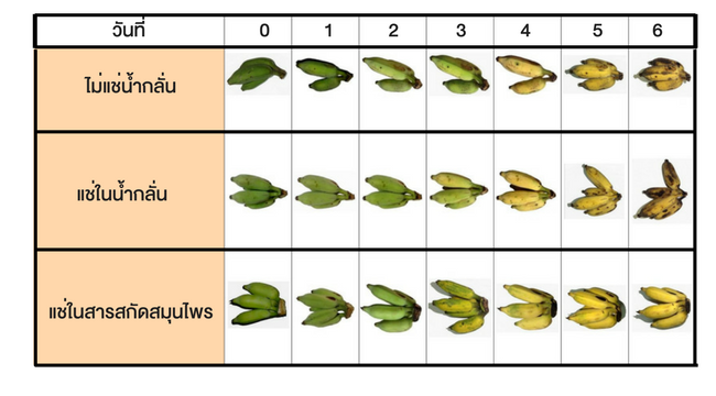 สูตรและกรรมวิธีการผลิต “สมุนไพรช่วยยืดอายุกล้วยน้ำว้าหลังเก็บเกี่ยว” สารสกัดจากสมุนไพรที่ช่วยเก็บรักษาและยืดอายุกล้วยน้ำว้าหลังเก็บเกี่ยว ช่วยยับยั้งการเจริญเติบโตของเชื้อราซึ่งเป็นสาเหตุหลักของการเกิดโรคในพืช