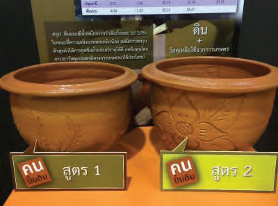 เทคโนโลยีการผลิต“กระถางมวลเบาจากเถ้าชานอ้อย” ที่มีความแข็งแรงแต่น้ำหนักเบากว่ากระถางดินเผาทั่วไป ช่วยลดปัญหาด้านการขนส่ง ต้นทุนการผลิตไม่สูง จึงสามารถแข่งขันเชิงพาณิชย์ได้