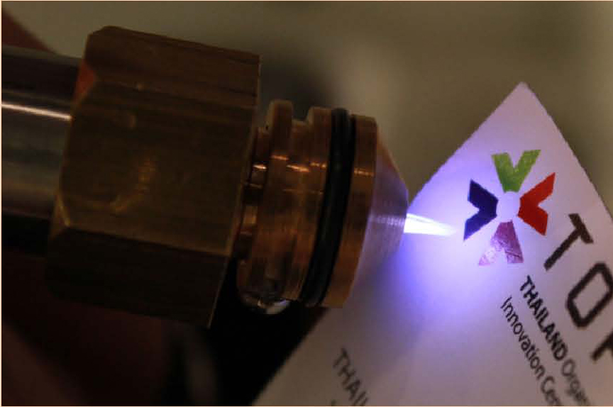 เทคโนโลยี “พลาสมาสำหรับปรับปรุงผิวสิ่งทอ” ให้มีคุณสมบัติพิเศษที่ดีขึ้น โดยไม่ทำลายโครงสร้างภายในของวัสดุ ใช้ระยะเวลาสั้น ไม่มีสารเคมีตกค้าง เป็นมิตรต่อสิ่งแวดล้อม