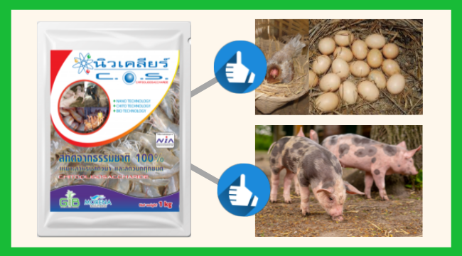 • สารเสริมการเจริญเติบโต (ไคโตโอลิโกแซคคาไรด์) เป็นสารสกัดจากธรรมชาติ เหมาะสำหรับสุกร และไก่ไข่ มีประโยชน์ต่อสุขภาพของสัตว์