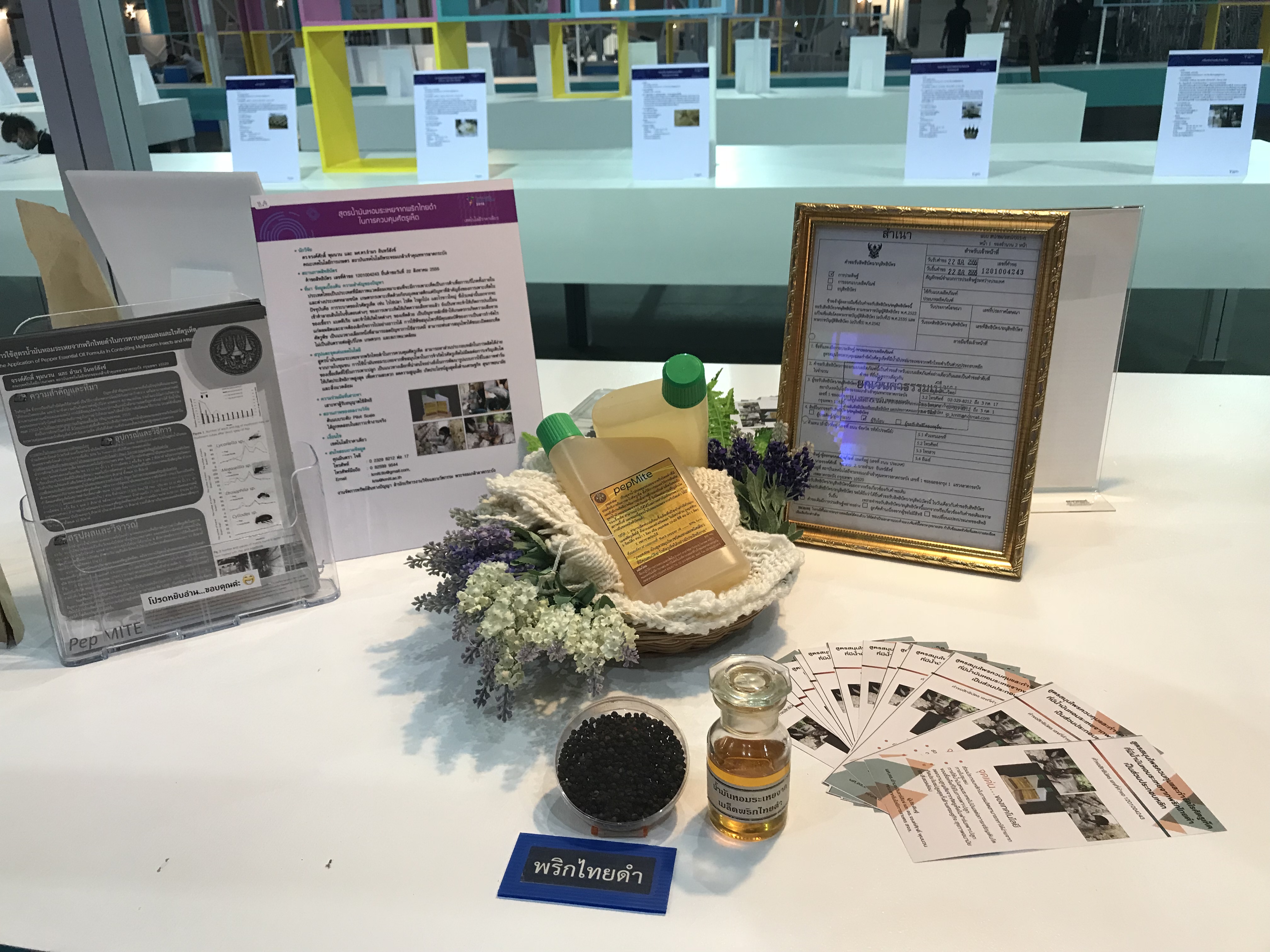 “สารสกัดจากสมุนไพรธรรมชาติเพื่อกำจัดศัตรูเห็ด” ได้รับการพัฒนาคิดค้นเพื่อแก้ไขปัญหาศัตรูเห็ดข้างต้น วัตถุดิบที่ใช้ในการผลิตหาได้ง่ายและต้นทุนในการผลิตไม่สูง ผ่านทดสอบในสภาวะใช้งานจริง ซึ่งพบว่าสามารถควบคุมและกำจัดไรศัตรูเห็ดโดยไม่ส่งผลกระทบต่อการเจริญเติบโตของเชื้อเห็ดที่ใช้ในการเพาะปลูก สะดวกต่อการใช้งาน ลดการใช้สารเคมี รวมถึงไม่เป็นอันตรายแก่เกษตรกร ผู้บริโภค และสิ่งแวดล้อม เนื่องจากวัตถุดิบที่ใช้ผลิตจากพืชสมุนไพรธรรมชาติ เหมาะสำหรับเกษตรกรผู้เลี้ยงเห็ดทั่วไปและฟาร์มเพาะเห็ดขนาดใหญ่