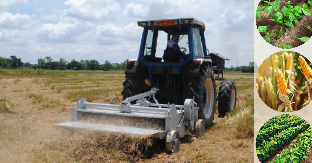 • สามารถทำงานในแปลงนาหลังเก็บเกี่ยวข้าวได้ โดยไม่ต้องเผาฟาง