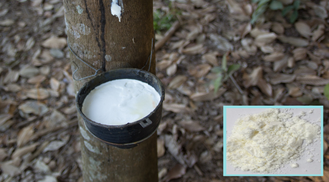 กรรมวิธีผลิต “ผงยางพารา spray dry” โดยการที่แปรรูปน้ำยางพาราให้อยู่ในรูปแบบผงเพื่อเพิ่มความสะดวกในการจัดเก็บและยืดอายุยางพารา ทั้งยังช่วยเพิ่มคุณสมบัติเชิงกล เช่น ความยืดหยุ่น และความทนทานให้กับวัสดุก่อสร้าง ซึ่งเป็นการเพิ่มมูลค่าและขยายขอบเขตการประยุกต์ใช้งานยางพาราของไทย