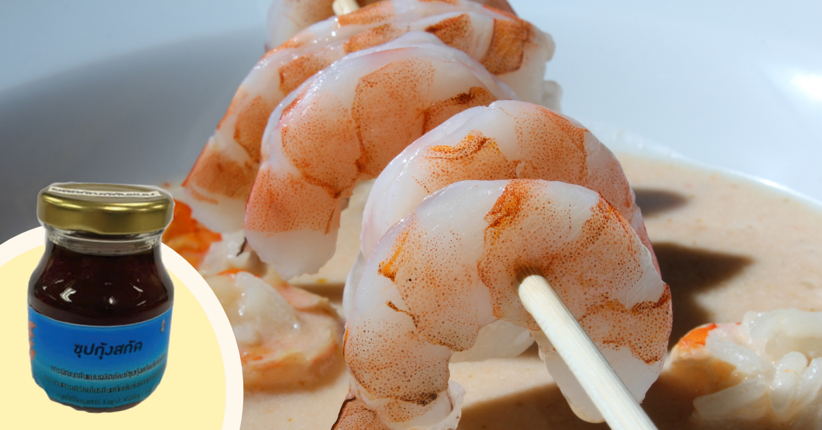 “ซุปกุ้งสกัดเข้มข้นพร้อมดื่ม” ได้รับการพัฒนาคิดค้นจากการนำเศษเหลือของกุ้งขาวซึ่งเป็นส่วนผสมของหัวเปลือกและหางกุ้ง มาเตรียมเพื่อนำไปใช้ในการย่อยสกัดโปรตีน ทำให้ได้โปรตีนเข้มข้นที่มีฤทธิ์ในการต้านอนุมูลอิสระสูง ซึ่งผลิตภัณฑ์ที่ได้ไม่เพียงแต่จะช่วยรักษาระบบภูมิคุ้มกัน และต้านการเจริญเติบโตของจุลินทรีย์ และยังเป็นการช่วยเพิ่มมูลค่าของเศษวัสดุเหลือทิ้งจากอุตสาหกรรมประมงของประเทศไทยอีกด้วย