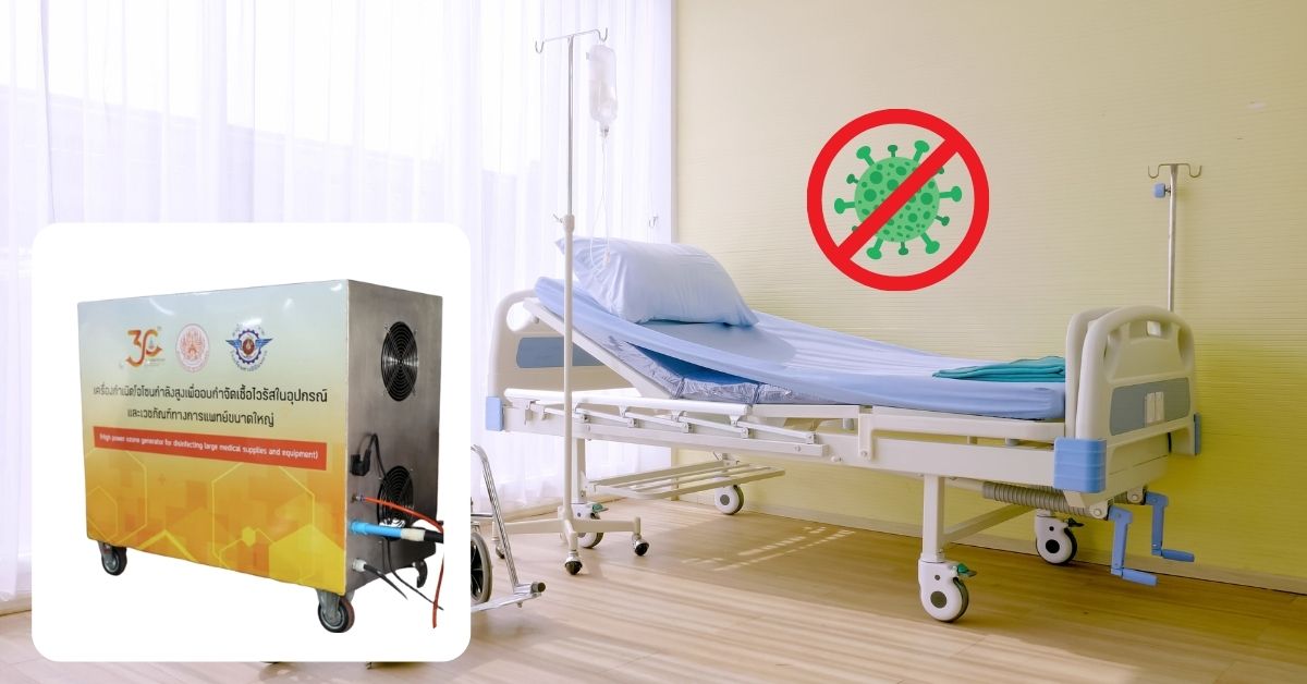 “เครื่องกำจัดเชื้อไวรัสในอุปกรณ์ทางการแพทย์ขนาดใหญ่” ได้รับการออกแบบและพัฒนาระบบผลิตก๊าซโอโซน โดยใช้วงจรการผลิตแบบ Corona Discharge ที่มีประสิทธิภาพดีที่สุด สามารถผลิตก๊าซโอโซนได้ในปริมาณมาก ภายในระยะเวลาอันรวดเร็ว ประหยัดพลังงาน มีต้นทุนต่ำ สามารถปรับขนาดกำลังงานได้ตามขนาดของพื้นที่ใช้งาน เคลื่อนย้ายสะดวก เหมาะสำหรับการใช้อบกำจัดเชื้อโรคภายในห้องผู้ป่วย รวมทั้งเครื่องมือและอุปกรณ์ทางการแพทย์ขนาดใหญ่ อาทิ ชุดกาวน์ หน้ากาก หมวก รองเท้า เตียงและเก้าอี้ผู้ป่วย เป็นต้น