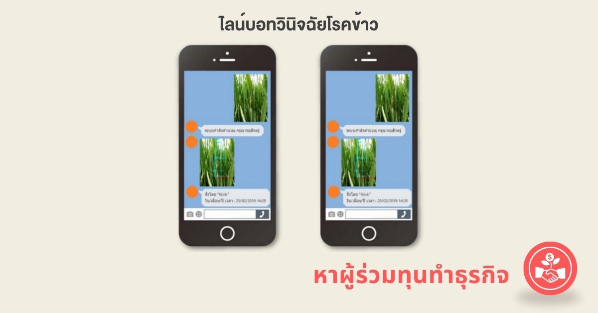 “ไลน์บอทวินิจฉัยโรคข้าว” ได้รับการพัฒนาคิดค้นเป็นโมบายแอปพลิเคชัน (Mobile Application) เพื่อวินิจฉัยโรคข้าวโดยใช้การวิเคราะห์ภาพถ่ายและปัญญาประดิษฐ์ที่ทำงานผ่านไลน์บอท (LINE Bot) สามารถวินิจฉัยโรคข้าวได้ 10 โรคที่พบได้บ่อยในประเทศไทยผ่านภาพถ่าย โดยใช้ระยะเวลาในการวินิจฉัยประมาณ 5 - 7 วินาที ช่วยให้เกษตรกรทราบสาเหตุและแก้ปัญหาโรคระบาดที่เกิดขึ้นได้อย่างรวดเร็วและถูกวิธี ลดการใช้สารเคมีและค่าใช้จ่ายที่ใช้พ่นยาที่ไม่ถูกต้องกับโรคหรือเกินความจำเป็นได้