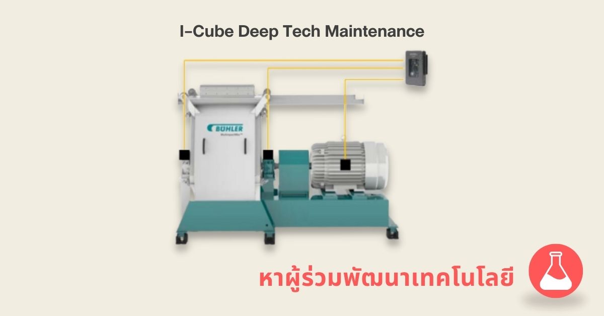 "I-Cube Deep Tech Maintenance, AI แม่นยําสูง เพื่อการจัดการบํารุงรักษา เครื่องจักรเชิงคาดการณ์" คือ ระบบปัญญาประดิษฐ์ที่ถูกพัฒนาคิดค้น สําหรับการจัดการการบํารุงรักษาเครื่องจักรในโรงงาน มีเซ็นเซอร์ตรวจสอบประสิทธิภาพการทำงานของเครื่องจักรอย่างต่อเนื่อง มีการรวบรวมข้อมูลด้านการสั่นสะเทือน อุณหภูมิ แล้วประมวลผลผ่านปัญญาประดิษฐ์เพื่อวิเคราะห์เชิงคาดการณ์ ช่วยลดเวลาหยุดทำงานของเครื่องจักร และปรับกระบวนการทำงานให้เหมาะสม นับเป็นการช่วยเพิ่มประสิทธิภาพด้านการวางแผนและการจัดตารางเวลา ซึ่งเป็นสิ่งสําคัญในการควบคุมต้นทุนด้านการบํารุงรักษาโดยตรง สามารถใช้กับเครื่องจักรได้ทุกประเภททั้งขนาดใหญ่ ขนาดเล็ก ครอบคลุมทั้งเครื่องจักรที่มีการทำงานไม่ซับซ้อนไปจนถึงเครื่องจักรที่มีเทคโนโลยีขั้นสูง