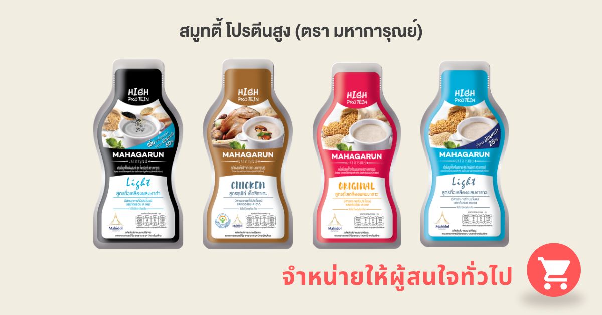 "เครื่องดื่มสมูทตี้โปรตีนสูง (ตรา มหาการุณย์)" ได้รับการพัฒนาคิดค้นให้เป็นเครื่องดื่มเพื่อสุขภาพสำเร็จรูปพร้อมรับประทาน เพื่อทดแทนมื้ออาหารและช่วยเสริมคุณค่าทางโภชนาการ โดยเฉพาะในผู้สูงวัยและผู้ที่รับสารอาหารได้ไม่เพียงพอ มีให้เลือก 4 รสชาติได้แก่ ถั่วเหลืองผสมงาขาว ซุปไก่ผสมเห็ดชิตาเกะ ถั่วเหลืองผสมงาขาวและถั่วเหลืองผสมงาดำ(สูตรผสมงาขาวและงาดำมีน้ำตาลน้อยกว่า) รสอร่อย รับประทานง่าย บรรจุขวดที่สามารถพกพาสะดวกและเก็บรักษาได้นาน เหมาะสำหรับผู้ที่ต้องการโปรตีนสูง ต้องการลดระดับน้ำตาลในเลือด และผู้ที่มีปัญหาด้านการกลืน