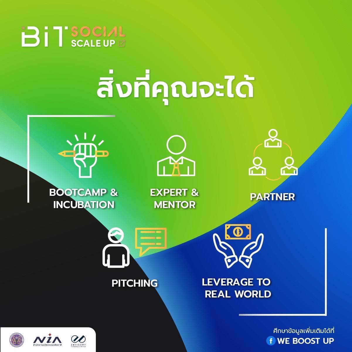 สำนักงานนวัตกรรมแห่งชาติ (องค์การมหาชน) หรือ NIA ภายใต้การร่วมมือของหน่วยขับเคลื่อนนวัตกรรมเพื่อสังคม (Social Innovation Driving Unit) และ EdVISORY ขอเชิญชวนผู้ที่สนใจเข้าร่วมเป็นส่วนหนึ่งในโครงการบ่มเพาะธุรกิจนวัตกรเพื่อสังคม “BIT Social Scale Up 2023” เพื่อรับทุนสนับสนุน “NIA Open Grant” มูลค่ากว่า 1.5 ล้านบาท