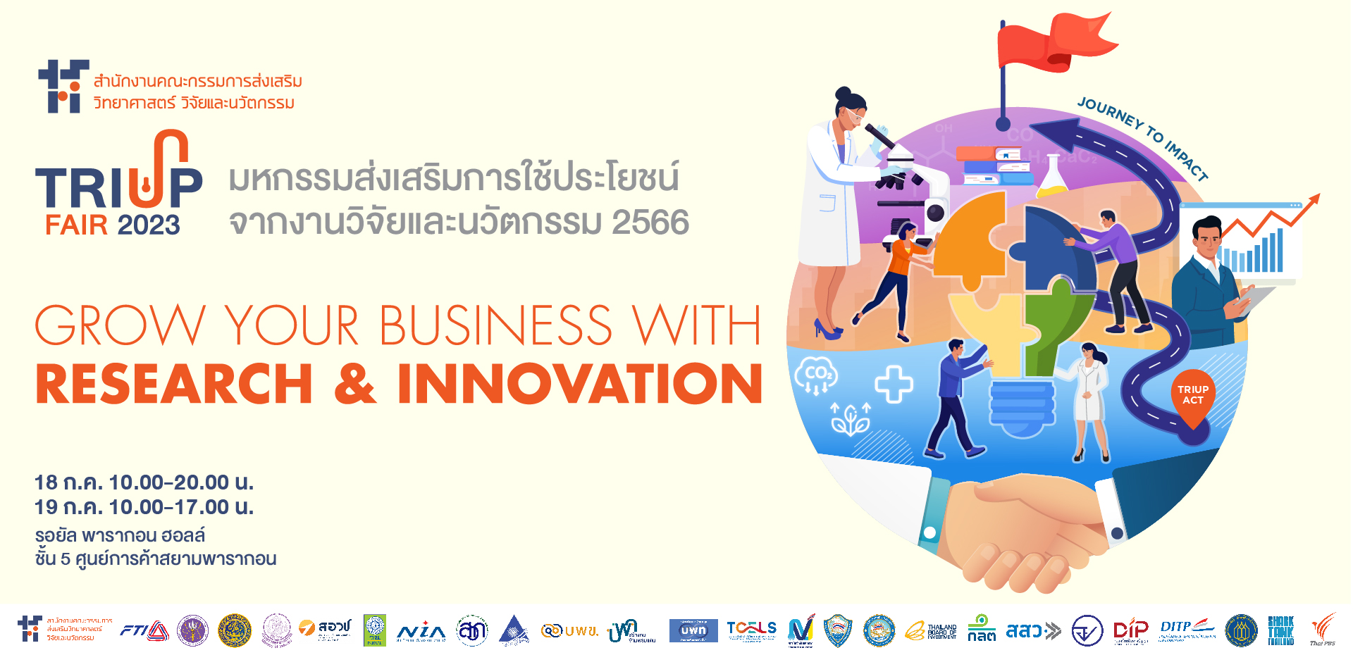 สกสว. ขอเชิญชวนผู้ประกอบการเจ้าของธุรกิจ นักลงทุน และผู้ที่สนใจเข้าร่วมชมงาน TRIUP Fair งานมหกรรมส่งเสริมการใช้ประโยชน์จากงานวิจัยและนวัตกรรม ประจำปี 2566 การค้นพบโอกาสทางธุรกิจและแรงบันดาลใจใหม่ ๆ เร่งธุรกิจของคุณให้เติบโต