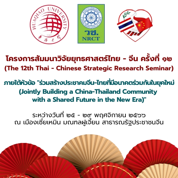 และเศรษฐกิจไทย–จีน กำหนดจัด "สัมมนาวิจัยยุทธศาสตร์ไทย-จีน ครั้งที่ 12" ณ มหาวิทยาลัยหัวเฉียวแห่งสาธารณรัฐประชาชนจีน