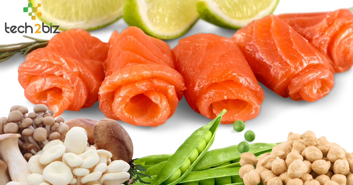 “เนื้อแซลมอนเทียม plant based ” ได้ถูกพัฒนาคิดค้นโดยใช้วัตถุดิบหลักจากถั่วพีและเห็ด ให้โปรตีนถึง 5.21% ของน้ำหนักแห้ง ซึ่งสูงกว่าแซลมอนเทียมเชิงการค้า ให้กรดอะมิโนจำเป็นที่สำคัญในปริมาณสูงตามข้อกำหนดขององค์การอาหารและเกษตรแห่งสหประชาชาติ มีเนื้อสัมผัสที่ดี ย่อยง่าย เป็นทางเลือกให้ผู้บริโภคที่ต้องการโปรตีนทดแทนเนื้อสัตว์ และผู้สูงอายุที่ต้องการแหล่งโปรตีนที่ย่อยง่าย