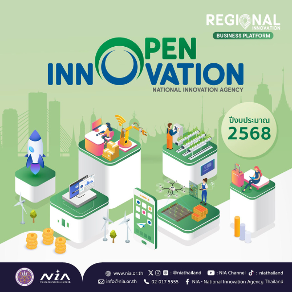 สำนักงานนวัตกรรมแห่งชาติ (NIA) เปิดรับสมัครทุนโครงการนวัตกรรมแบบเปิด (Open Innovation) ภายใต้แพลตฟอร์มการสนับสนุนธุรกิจนวัตกรรมรายภูมิภาค (Regional Innovation Business Platform) ประจำปี 2568